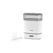 Sistema exclusivo: los biberones se acomodan sobre las ramas, equipadas de conductos de ventilación con vapor que ayudan a esterilizar delicadamente el fondo de los biberones.Dimensiones del esterilizador eléctrico Turbo Vapor: 25 x 27 x 35 cm.