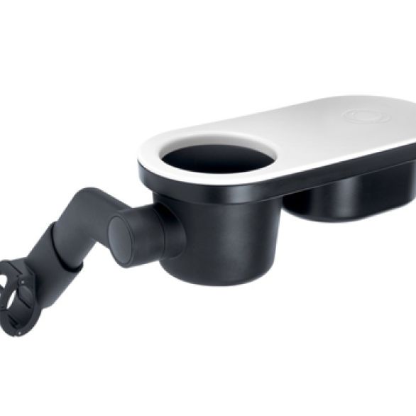 Su tapa deslizante gira para permitir que el niño acceda a su comida, mientras que el portavasos evita que las bebidas se derramen. Las dos piezas de la bandeja se mantienen verticales en una posición segura, incluso cuando la silla está reclinada para echar una siestecita después de comer.