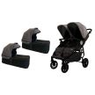 La Nueva Versión Baby Monsters Easy Twin 4 incorpora unos cambios respecto a la versión anterior la 3S. Esta nueva versión de silla de paseo gemelar pesa un 15% menos que su antecesora y aguanta hasta 47 kg de peso (frente a los 33 kg de la versión anterior), un 40% más de carga total máxima!!! Además incluye todo el textil de la silla en tejido especial Black edition y barrera delantera individual incluida!!!